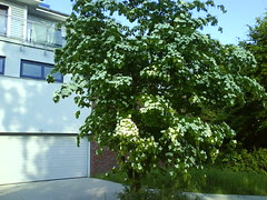 Ich weiß nicht mal, wie er heißt. Aber die Blüten liebe ich, wenn sie in der Abendsonne leuchten.